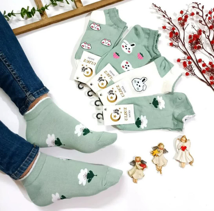 جوراب طرح دار سبز پاستیلی (۱۲ سال تا ۳۰ سال )