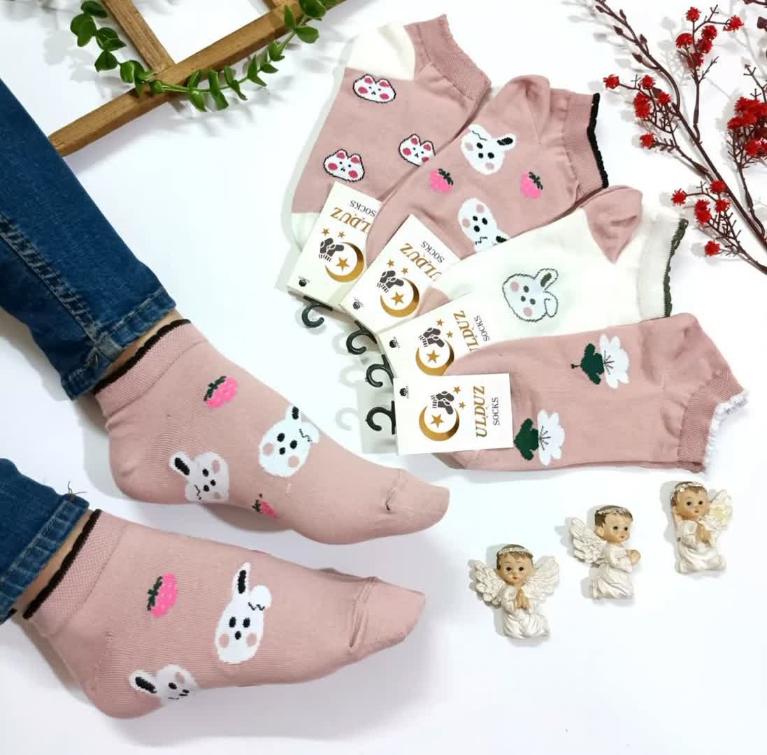 جوراب طرح دار صورتی پاستیلی (۱۲ سال تا ۳۰ سال)
