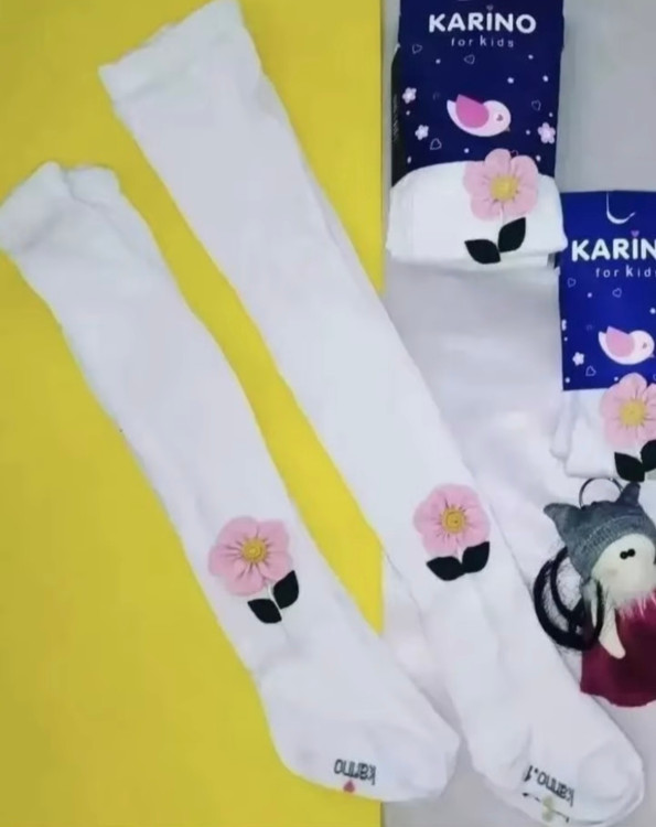 جورابشلواری رنگ سفید ( با گل صورتی)(۴ سال تا ۹ سال)