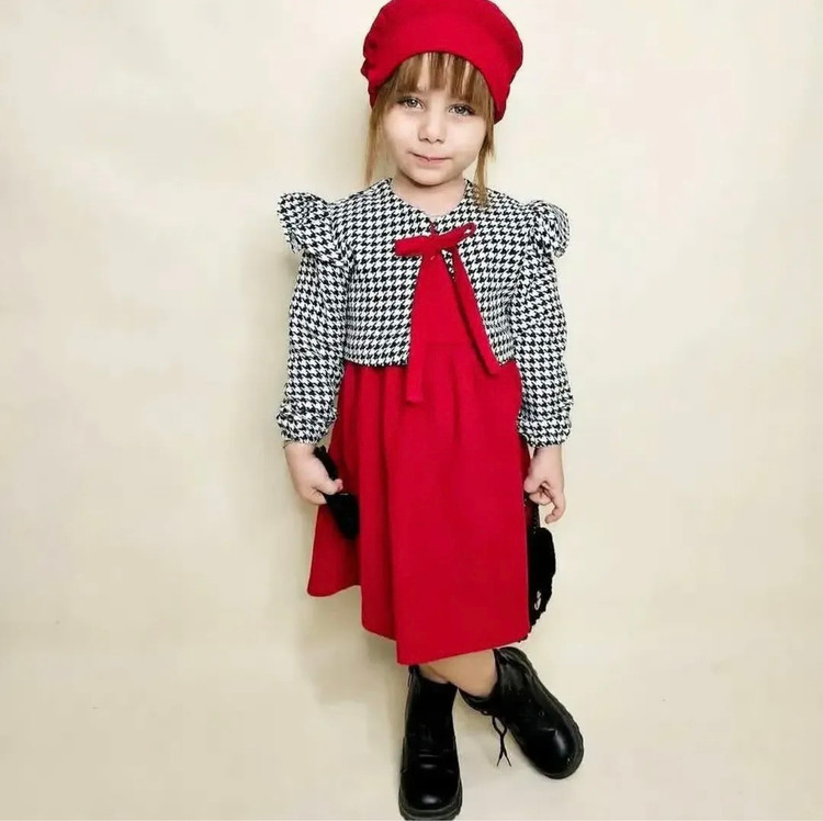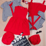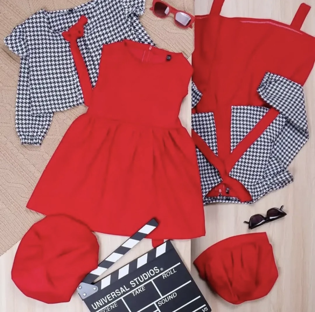 یلدایی سارافون + کت چهارخونه + کلاه قرمز (۳ تا ۸ سال)