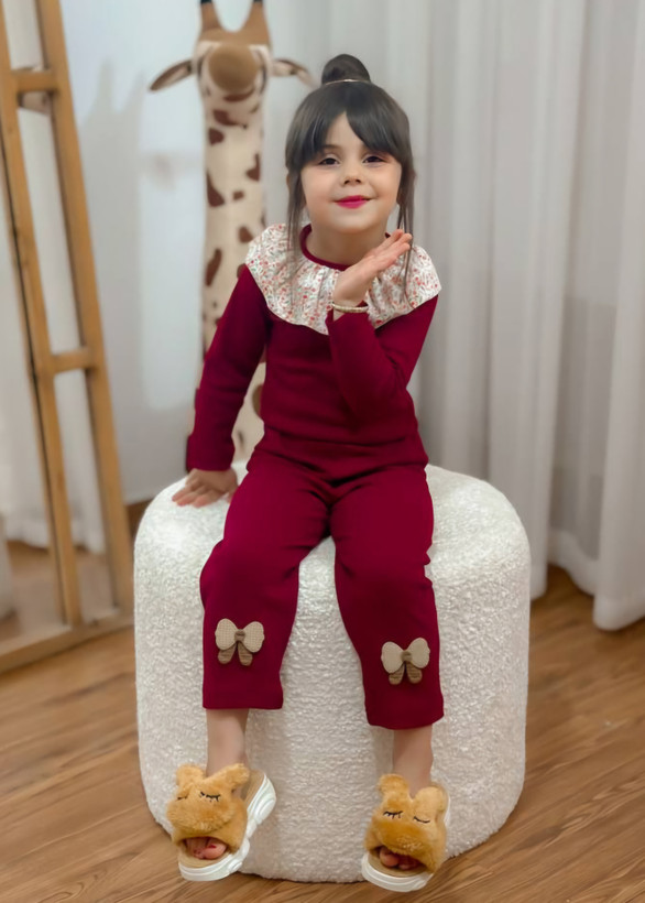 بلوزشلوار گل مینیاتوری زرشکی(۶ سال تا ۱۰ سال )